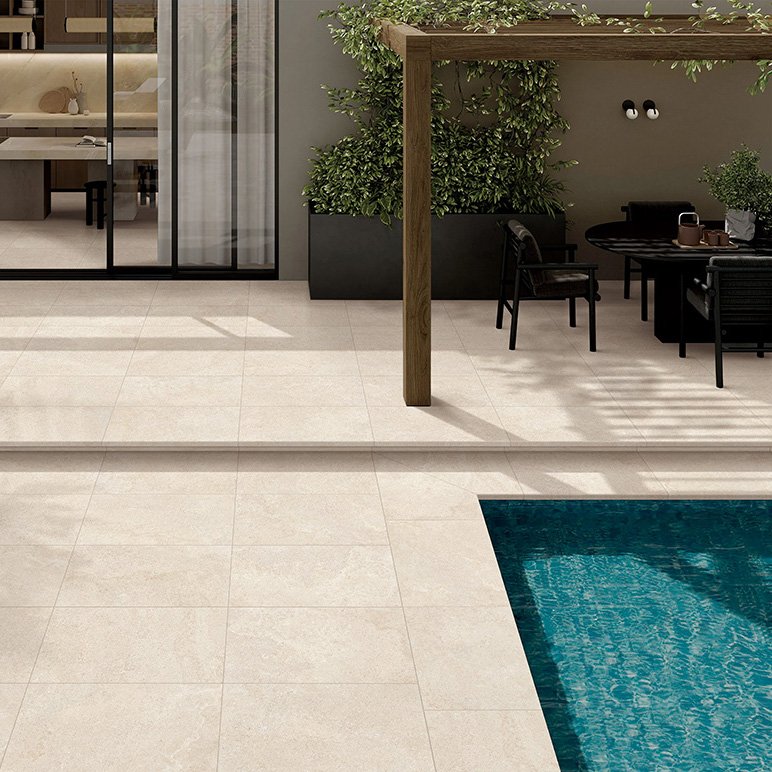 The Surfacetec® finish is perfect for an indoor/outdoor continuation of the same tile, creating a seamless look.